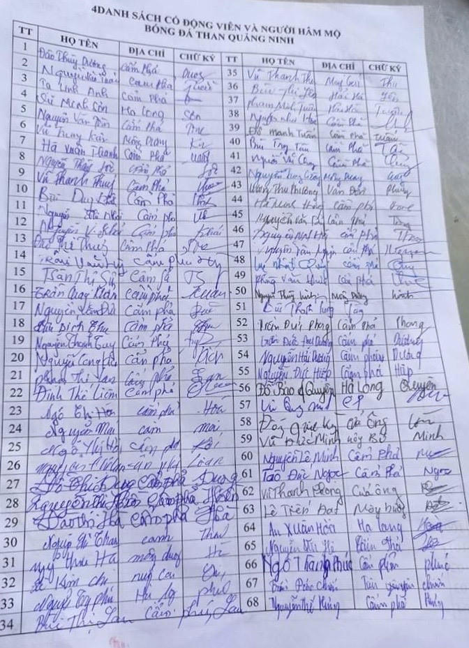 Đơn kiến nghị cùng hàng nghìn chữ ký của Hội cổ động viên Than Quảng Ninh đã được gửi lên các cấp lãnh đạo tỉnh Quảng Ninh trước những khó khăn của đội bóng.