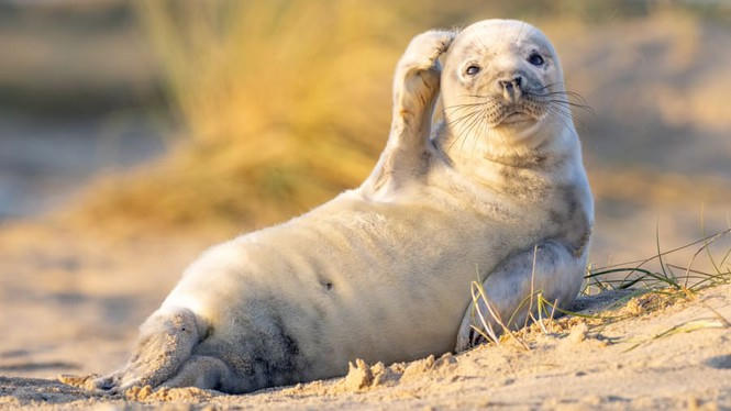 Hải cẩu đang vò đầu băn khoăn khi đang ở làng biển Winterton-on-Sea của Anh. Ảnh: Johan Siggesson.