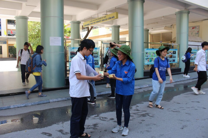 Là năm đầu tiên tham gia TSMT, bạn Minh Anh hào hứng chia sẻ: "Đã từng trải qua kì thi THPT quốc gia nên phần nào mình hiểu được sự lo lắng, căng thẳng của các em học sinh. Bởi thế tay cầm sữa, nước để phát cho các em ấy mình rất vui. Hành động nhỏ nhưng ý nghĩa lớn để cổ vũ, khích lệ tinh thần cho các em bước vào kì thi thật bình tĩnh, làm bài thật tốt. Các em làm bài tốt cũng khiến mình quên đi mệt mỏi”.
