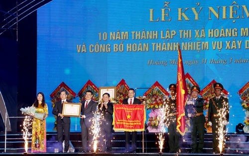 Thị xã Hoàng Mai đón nhận Huân chương Lao động hạng Ba của Chủ tịch nước và Cờ thi đua của Thủ tướng Chính phủ.
