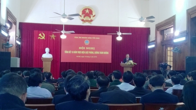 Ngày 14/3, tại Hà Nội, Toà án nhân dân tối cao (TANDTC) đã tổ chức Hội nghị tổng kết 10 năm thực hiện Luật Phòng, chống tham nhũng trong các TAND. Đồng chí Trương Hòa Bình, Ủy viên Bộ Chính trị, Chánh án TANDTC, Ủy viên Ban Chỉ đạo Trung ương về phòng, chống tham nhũng chủ trì Hội nghị.