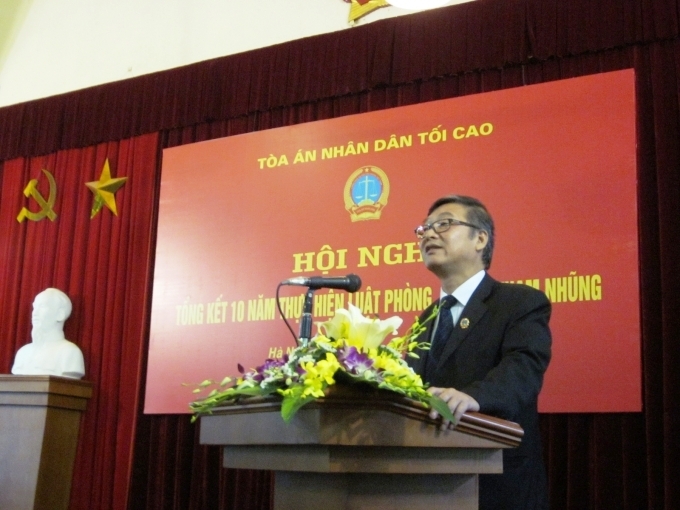 | Phó Chánh án TANDTC Nguyễn Sơn trình bày Báo cáo Tổng kết 10 năm thực hiện Luật Phòng, chống tham nhũng và Báo cáo chuyên đề về công tác xét xử tội phạm tham nhũng. |