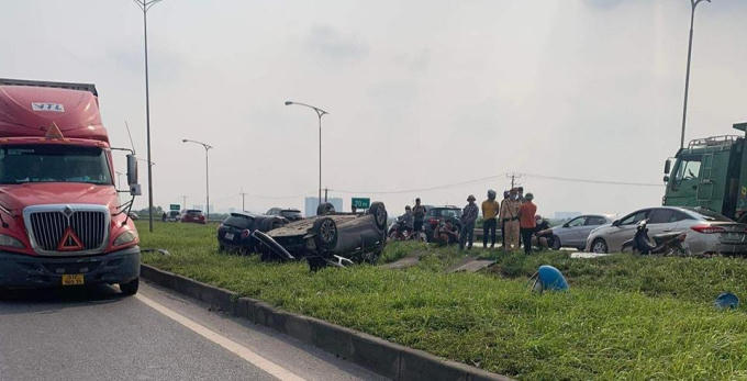 Vụ tai nạn giao thông xảy ra trên cao tốc Hà Nội - Bắc Giang. Ảnh Giaothonghanoi.kinhtedothi.vn
