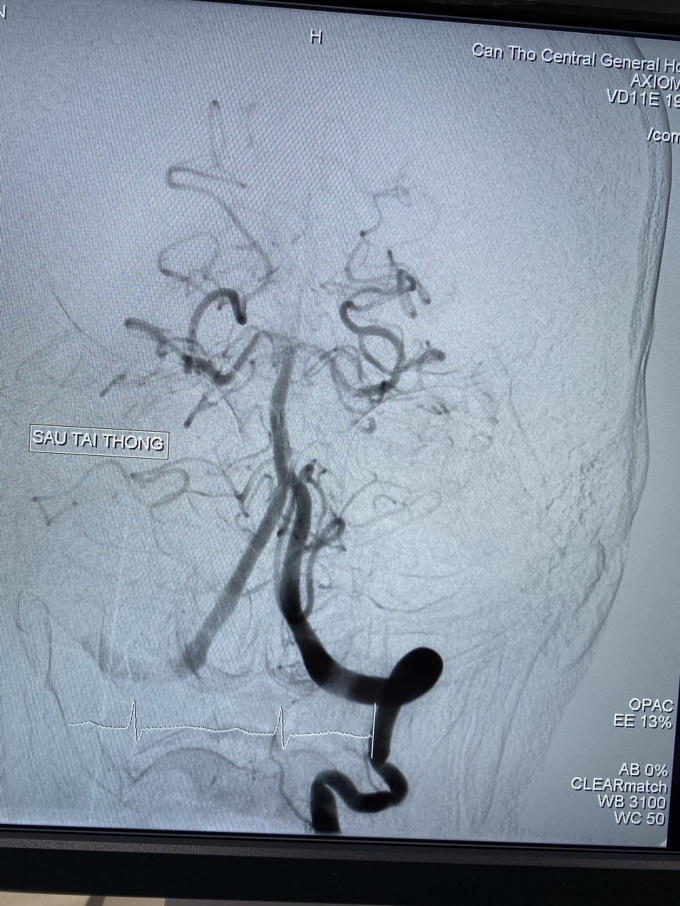 Hình ảnh động mạch thân nền sau can thiệp tái thông.