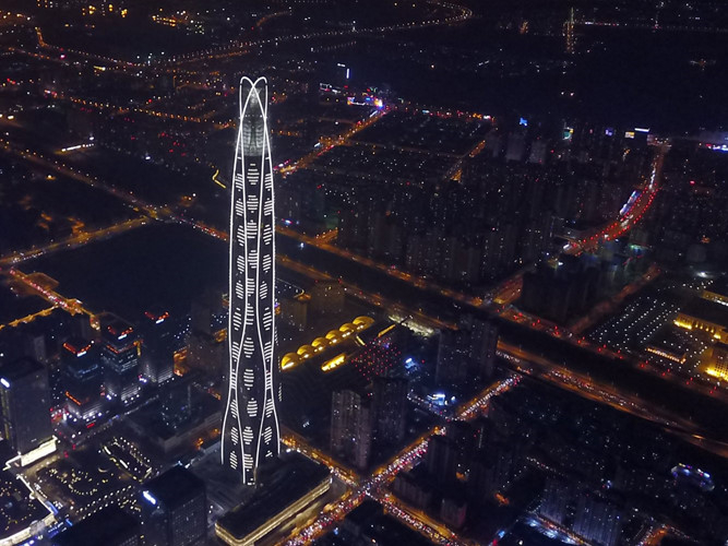 Goldin Finance 117 (còn gọi Tháp 117 Trung Quốc) cao 596 m, hoàn thành năm 2017 nhưng dự kiến đến 2021 mới mở cửa đón khách.