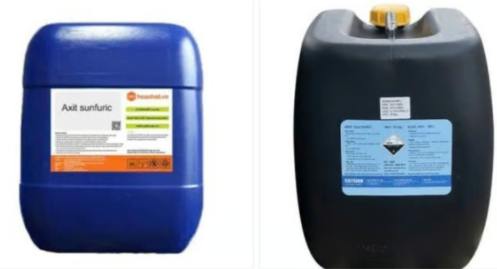 Cũng theo cơ quan chức năng, mỗi can hóa chất bị cuốn trôi có dung tích 20 lít, thường có màu xanh hoặc xám, chứa Axit Sunfuric (H₂SO₄). Đây là hóa chất công nghiệp có tính ăn mòn cực kỳ mạnh.
