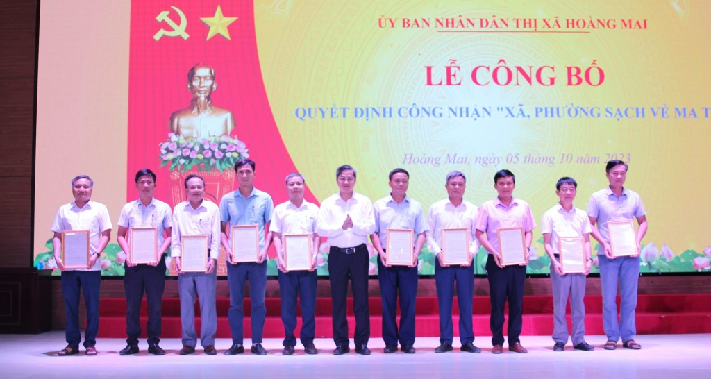 Ngày 5/10/2023, UBND thị xã Hoàng Mai, tỉnh Nghệ An long trọng tổ chức Lễ công bố Quyết định công nhận “Xã, phường sạch về ma túy”.