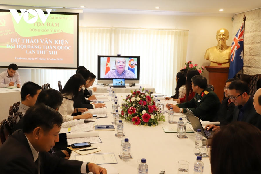 Đại sứ quán Việt Nam tại Australia đã tổ chức tọa đàm để lấy ý kiến đóng góp của công dân Việt Nam và kiều bào đối với Dự thảo văn kiện trình Đại hội Đảng toàn quốc lần thứ XIII. Tọa đàm diễn ra tại thủ đô Canberra và có sự tham gia của 11 điểm cầu trực tuyến từ khắp các bang và vùng lãnh thổ khác của Australia.