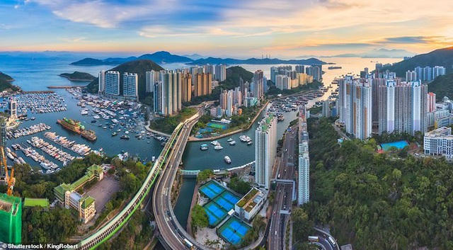 Ảnh chụp trên không đầy mê hoặc của cảng Aberdeen và cầu Ap Lei Chau ở Hồng Kông.