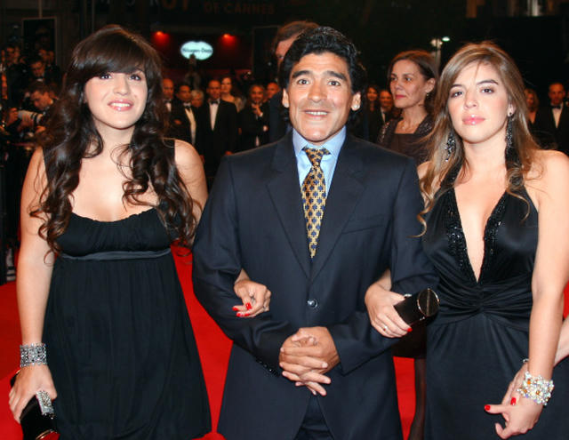 Maradona bên cạnh hai cô con gái lớn Dalma Nerea, Gianinna Dinorah