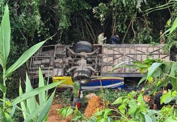 Tại đây, thì bị lật rơi xuống vực sâu khoảng 20m. Lúc xảy ra tai nạn trên xe chở khoảng 38 người, trong đó có 6 trẻ em.