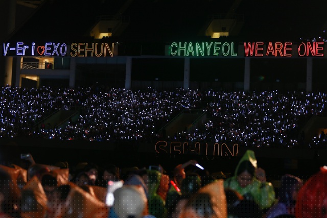 Pháo sáng rực rỡ cùng hàng trăm nghìn que phát sáng được các fan xếp thành hình “Love SC” đã khiến sân vận động Mỹ Đình lung linh hơn bao giờ hết. “5 năm trước đây, khi đến Việt Nam biểu diễn lần đầu tiên, chúng tôi đã biểu diễn một bài hát bằng tiếng Việt và cũng trong một ngày nhiều gió và lạnh như thế này. Sau 5 năm mới trở lại, được ăn món ăn Việt Nam, nhận được sự ủng hộ nồng nhiệt của các bạn, chúng tôi thực sự hạnh phúc”, EXO-SC chia sẻ.