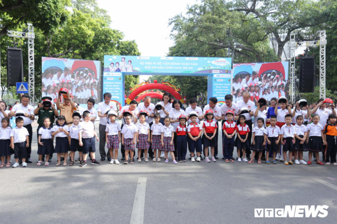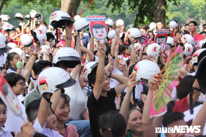 3.000 học sinh lớp 1 được tặng mũ bảo hiểm khi tham dự sự kiện đi bộ vận động toàn dân “Đội mũ bảo hiểm cho trẻ em”.