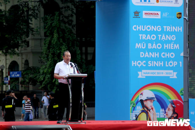 "Sự kiện ngày hôm nay thể hiện tình yêu thương va lời cam kết mạnh mẽ của toàn xã hội trong việc bảo vệ an toàn sinh mạng và sức khỏe cho thế hệ tương lai của đất nước, chung tay ngăn chặn, đẩy lùi những nỗi đau do tai nạn giao thông. Vẫn còn không ít trẻ em không được đội mũ bảo hiểm khi ngồi trên mô tô, xe máy, xe đạp điện tham gia giao thông hay các bậc cha mẹ chưa ý thức được điều này", Phó Thủ tướng Trương Hòa Bình nói.