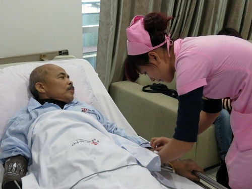 | Cố nghệ sĩ Hán Văn Tình trong thời gian điều trị tại bệnh viện. Ảnh: NN. |
