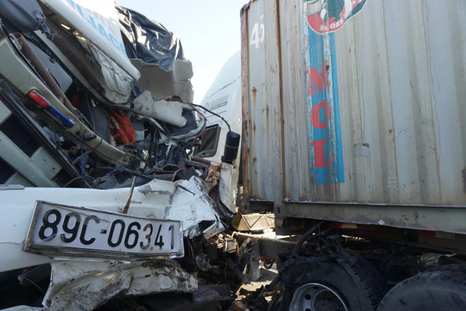 Vụ tai nạn khiến phần đầu 2 chiếc xe hư hỏng nặng, tài xế xe tải Trần Quốc T. tử vong, phụ xe tải là anh Trịnh Huy T. (SN 1982, huyện Yên Mỹ, tỉnh Hưng Yên) và tài xế xe container bị thương nặng.