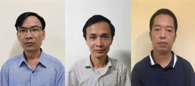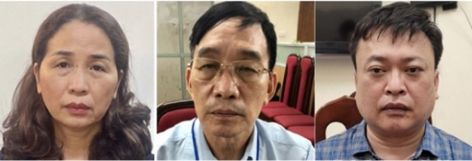 Từ trái qua, các bị can Vũ Liên Oanh, Ngô Vui và Hà Huy Long. Ảnh: BCA