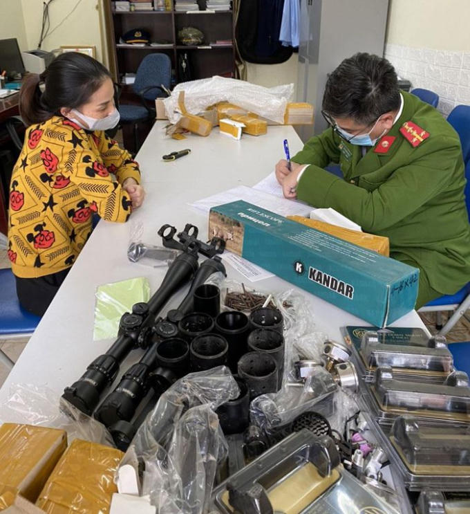 Phạm Thị Ngọc khai, toàn bộ số linh, phụ kiện trên có thể sử dụng để lắp ráp, chế tạo súng hơi, súng tự chế. Chiều cùng ngày, Phạm Thị Ngọc tự nguyện giao nộp thêm 300 linh, phụ kiện có thể lắp ráp, chế tạo súng hơi, súng tự chế.