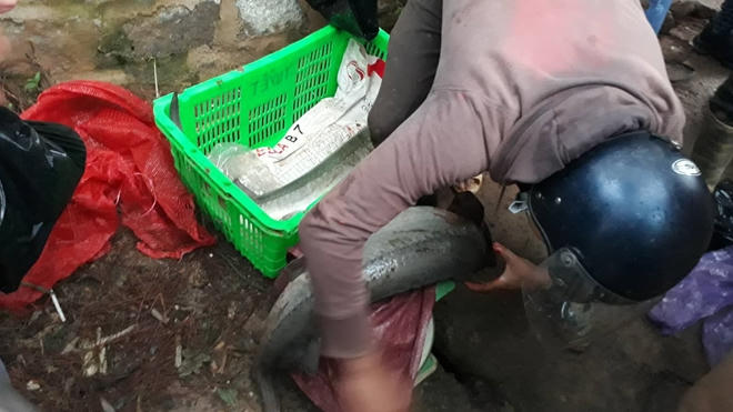 Người dân bắt cá tầm chảy ra ngoài đem ra Đà Lạt bán