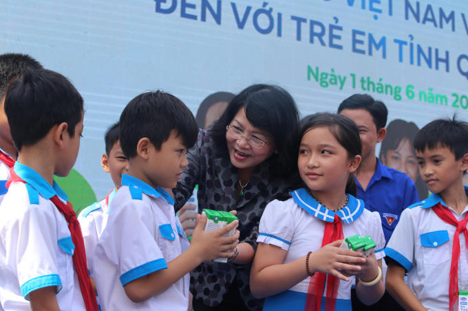 Cụ thể, hơn 33.000 trẻ em mầm non, học sinh tiểu học được thụ hưởng chương trình Sữa học đường và 1.200 trẻ em có hoàn cảnh khó khăn được uống sữa thông qua Quỹ sữa Vươn cao Việt Nam.
