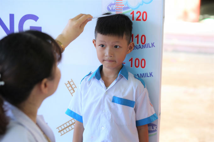 Các em học sinh được khám dinh dưỡng và kiểm tra sức khỏe bởi các bác sĩ của Trung tâm khám và tư vấn dinh dưỡng Vinamilk
