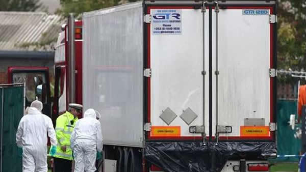 Các nhà điều tra cho rằng các nạn nhân này là những người di cư bị bọn buôn người đưa tới Anh bằng cách giấu họ bên trong thùng container đông lạnh. Thùng container này được chuyển đến bằng đường biển từ thị trấn Zeebrugge của Bỉ, sau đó cập cảng Purfleet ở Essex của Anh lúc trưa 22/10. Đây được coi là tuyến đường thường xuyên được những kẻ buôn người khét tiếng sử dụng để đưa lậu người di cư vào Anh.