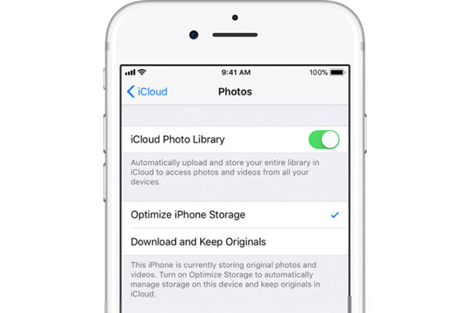 Sau đó tìm kiếm tính năng Optimize iPhone Storage và đảm bảo rằng nó được chọn để iCloud biết người dùng đang sử dụng nó nhằm giải phóng dung lượng. Tương tự như vậy, hãy chắc chắn rằng Download and Keep Originals không được chọn.