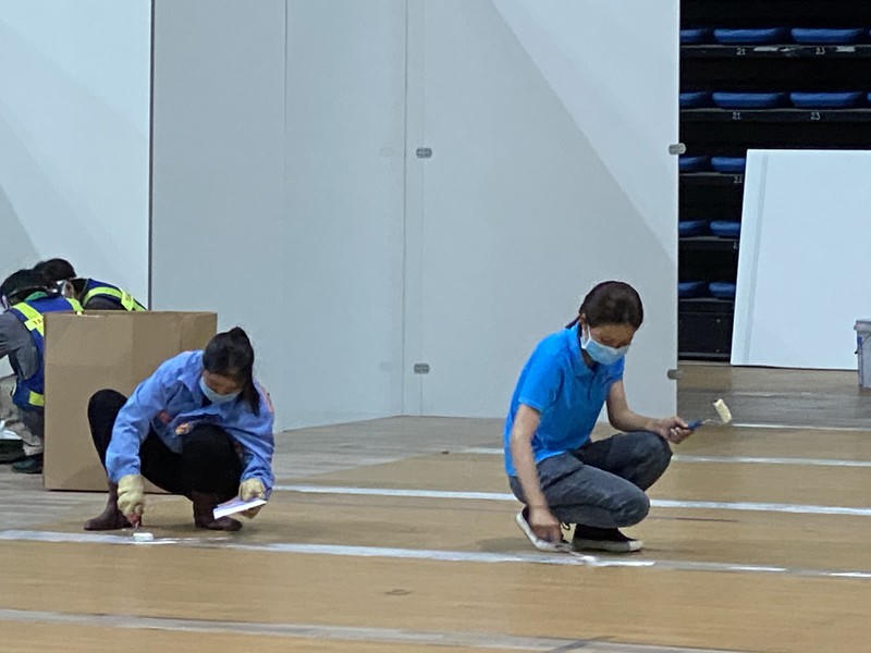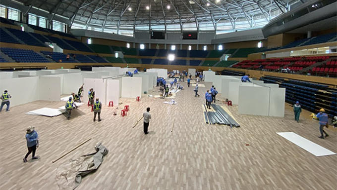 Khẩn trương việc thi công Bệnh viện dã chiến tại Cung văn hóa thể thao Tuyên Sơn