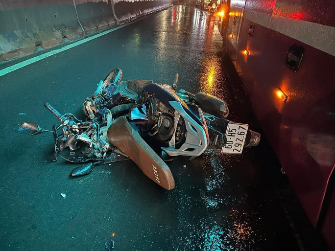 Hiện trường vụ tai nạn giao thông nghiêm trọng khiến hai cha con tử vong xảy ra trên tuyến quốc lộ 1 đoạn đi xa địa bàn huyện Xuân Lộc, tỉnh Đồng Nai.