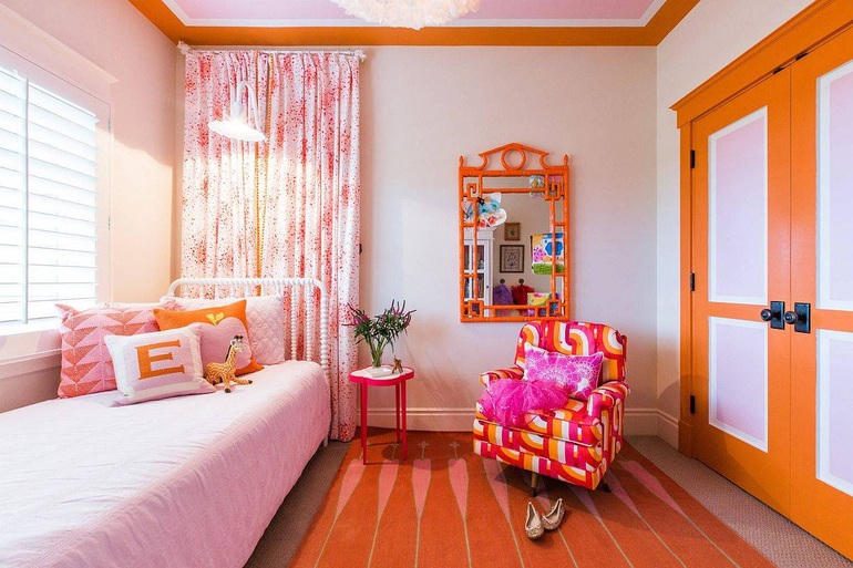 San hô là một màu sắc tuyệt vời cho phòng của bé gái nếu bạn không thích màu hồng vốn đã quá phổ biến. Màu san hô kết hợp với các màu sắc tươi sáng khác sẽ tạo nên một không gian tràn đầy năng lượng và vui nhộn cho trẻ em.