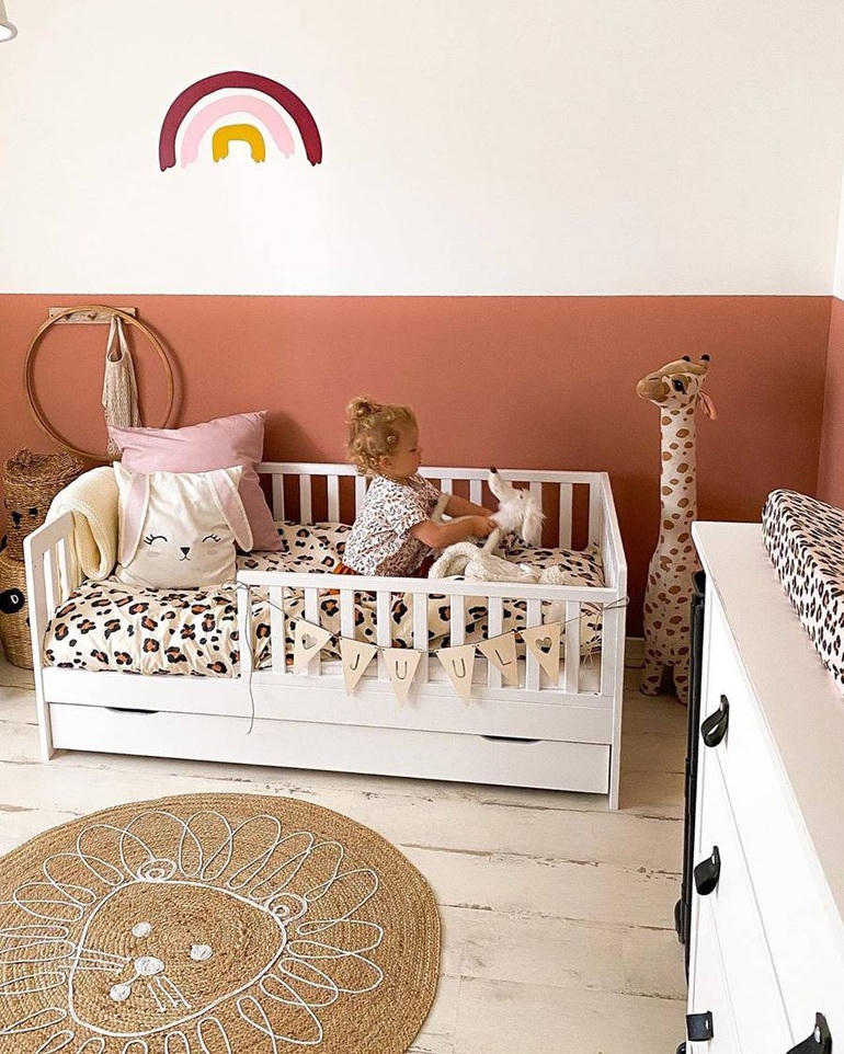 Ít người nghĩ đến việc sử dụng màu đất nung để trang trí phòng trẻ em nhưng màu này giúp mang lại cảm giác tuyệt vời. Không chỉ sàn lát gạch đất nung, bạn có thể sử dụng màu này cho tường, trần nhà và thậm chí tạo điểm nhấn với các vật trang trí và phụ kiện cùng tông màu. Bạn nên kết hợp màu này với màu trắng hoặc các màu trung tính dễ chịu khác để tránh gây áp đảo thị giác.