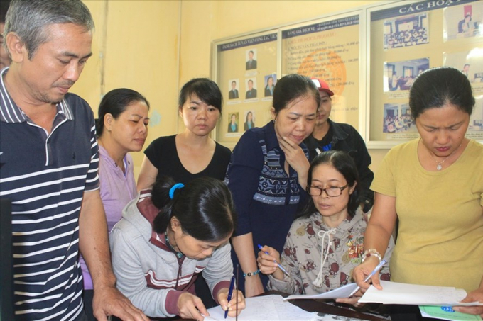 | CN đã và đang làm việc tại Cty CP Hòa Việt ký tên vào đơn tại Trung tâm Tư vấn pháp luật. Ảnh: P.V |
