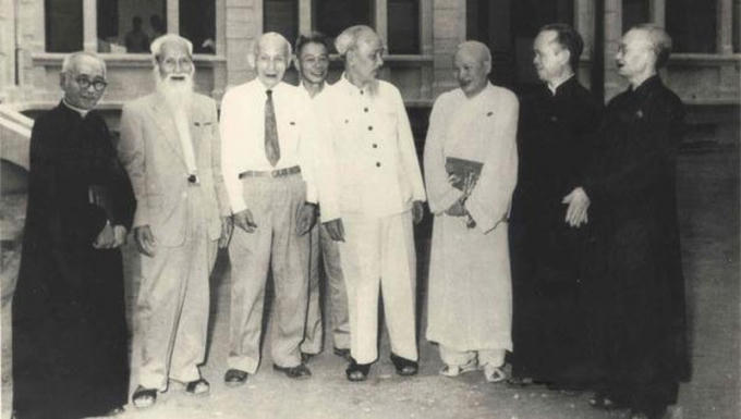 Chủ tịch Hồ Chí Minh đã trở thành hạt nhân của trung tâm đoàn kết xã hội, khích lệ đồng bào các tôn giáo, toàn dân đồng lòng xây dựng đất nước. Ảnh: TL