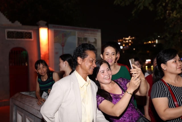 Và Chế Linh vô cùng bất ngờ khi ông vừa dạo bước ở bờ Hồ, rất nhiều khán giả, đặc biệt là các bà các chị đang đi dạo, những du khách đi thăm Hà Nội về đêm đã lập tức nhận ra nam danh ca và vây lấy ông xin chụp ảnh, xúc động trò chuyện cùng ông.