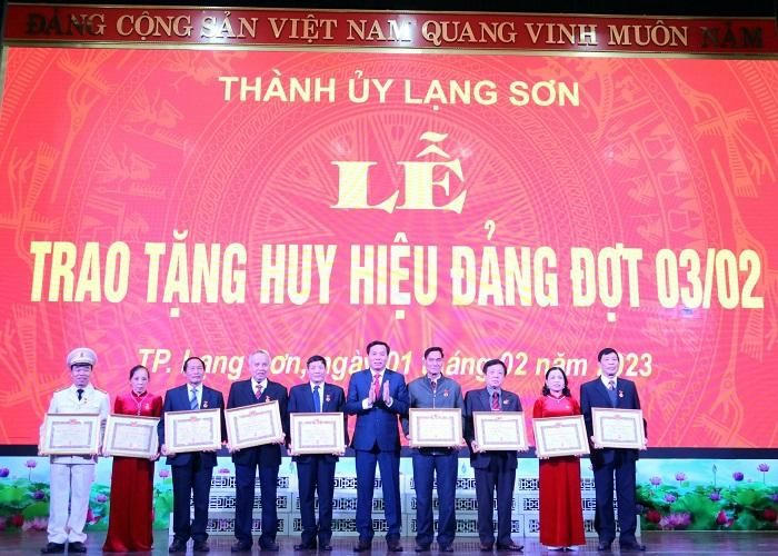Phát biểu tại buổi lễ, đồng chí Bí thư Thành ủy Lạng Sơn khẳng định việc trao tặng Huy hiệu Đảng thể hiện sự ghi nhận, trân trọng của Đảng, Nhà nước và Nhân dân đối với những đóng góp của các đồng chí vào sự nghiệp đấu tranh giành độc lập, xây dựng, bảo vệ, phát triển quê hương, đất nước.