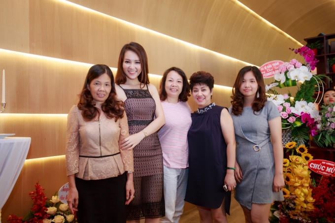 Đến chúc mừng Thụy Vân lên chức bà chủ vào sự kiện khai trương tối qua có nhiều nghệ sĩ thân thiết với Á hậu như MC Ngọc Trinh, Á hậu Tú Anh, MC Vân Hugo, diễn viên Huyền Lizzie, BTV Thể thao Quỳnh Chi, vợ chồng diễn viên Minh Tiệp, diễn viên Diệu Hương, NTK Hà Duy, cựu siêu mẫu Hải Anh, ca sĩ Tạ Quang Thắng, ca sĩ Bảo Trâm Idol, BTV Hoài Anh và con gái, Hoa hậu Camy Thu Trang, Hoa hậu Biển 2014 Lan Hương..