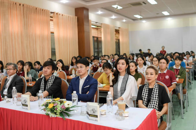 Á hậu Thúy Vân, “Nàng thơ xứ Huế” Ngọc Trân, ca sĩ Nguyên Vũ, ca sĩ Thảo Trang cùng những khách mời là chuyên gia trên nhiều lĩnh vực đã giao lưu, ký tặng sách cho sinh viên.