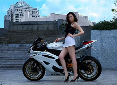 Người mẫu – hoa khôi sở hữu thân hình bốc lửa có nghệ danh Thiên Kim cũng được giới chơi mô tô phân khối lớn ở TP. HCM biết đến với bức hình gợi cảm bên những chiếc xe mô tô “khủng”.