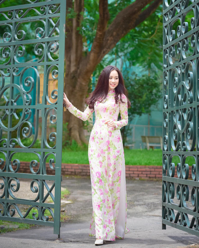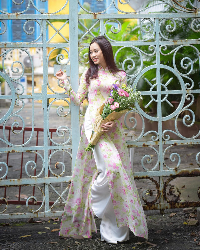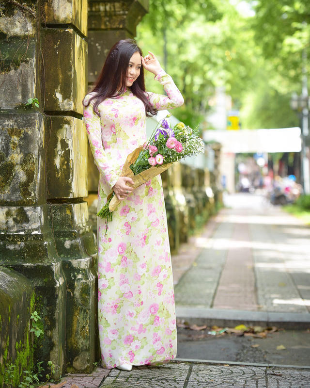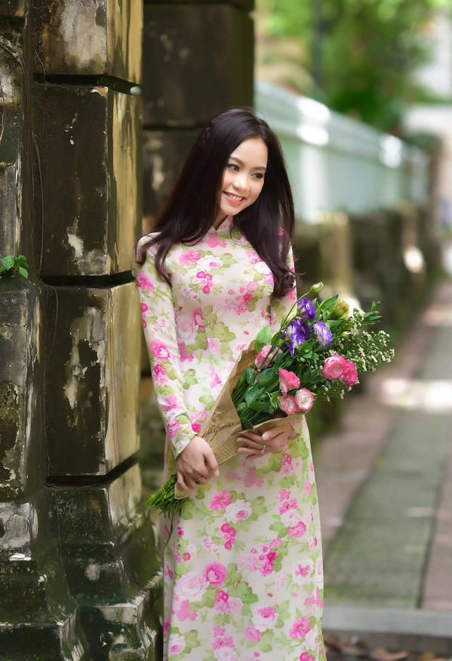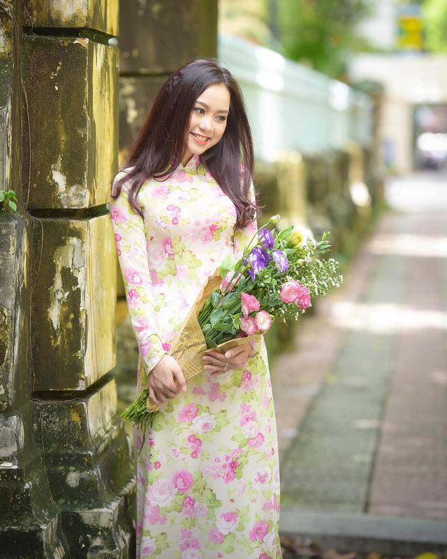 Hương Quỳnh khoác trên mình tà áo dài truyền thống nhẹ nhàng với màu sắc được phối rất trang nhã và tươi sáng, khoe trọn nét đằm thắm, duyên dáng và đầy sức sống của mình trên những con đường, góc phố bình yên...
