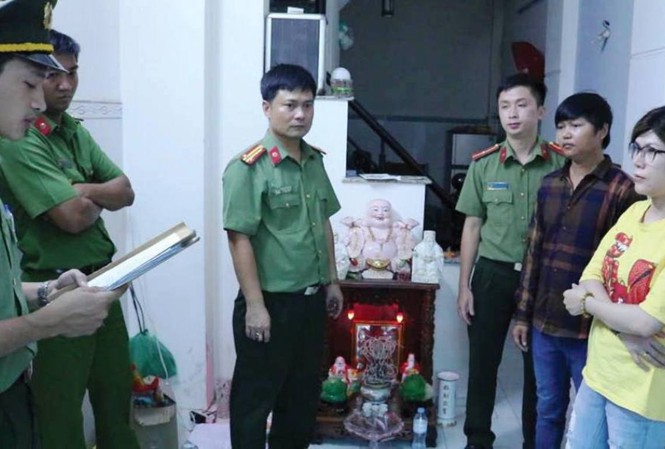 Đọc lệnh khởi tố Bùi Thị Thu Hồng cùng chồng (ảnh Công an TT-Huế)