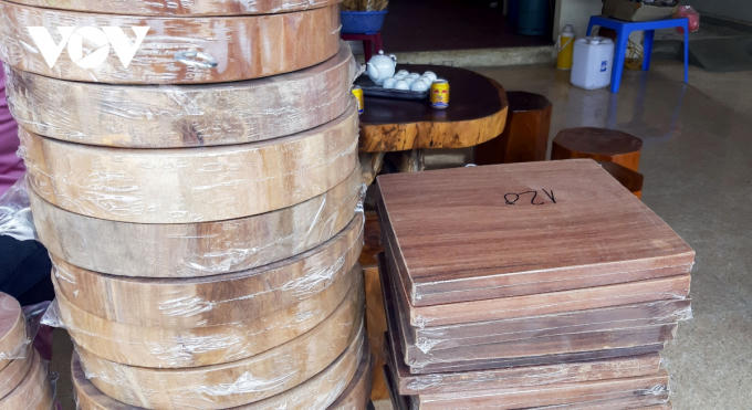 Mỗi cửa hàng luôn bày bán không dưới 100 chiếc. Chủ cửa hàng ở đây bật mí, thớt nghiến tại quán được cắt sẵn từ rừng mang về. Về đến nơi là chỉ đánh bóng, dán mác, đóng túi nilon và đưa lên kệ để bày bán. Khách muốn mua bao nhiêu cũng có, thậm chí khi khách bày tỏ lo lắng về việc mua nhiều, trong quá trình vận chuyển mang về xuôi sẽ bị lực lượng chức năng bắt giữ thì người này khẳng định “Em cứ chụp hình qua chị, lưu số điện thoại, chị sẽ bảo kê cho em mang về tận nhà”.