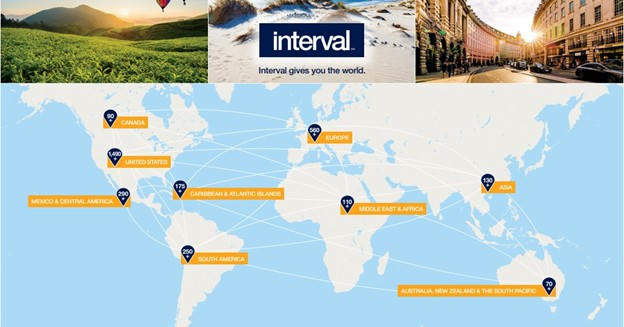 Mạng lưới trao đổi toàn cầu của Interval bao gồm gần 3.000 khu nghỉ dưỡng tại hơn 90 quốc gia và phục vụ khoảng 1.7 triệu gia đình thành viên. Interval có văn phòng tại 13 quốc gia và Trung tâm Dịch vụ Thành viên tại Hoa Kỳ, Châu Âu, Châu Mỹ Latinh và Châu Á.