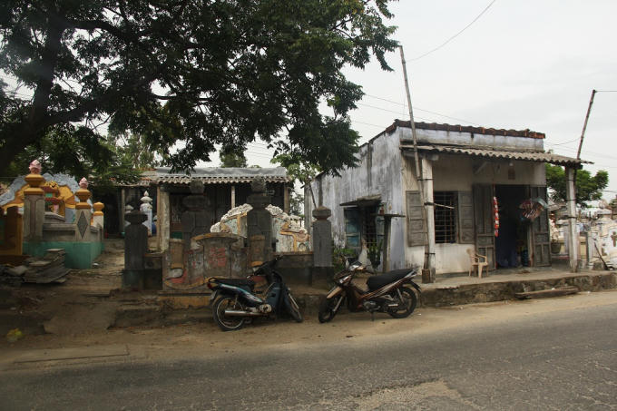 Dừng chân tại khu vực Tổ dân phố Hải Thành, thị trấn Thuận An, huyện Phú Vang, tỉnh Thừa Thiên - Huế, chúng tôi không khỏi ớn lạnh khi đập vào mắt là những ngôi nhà nằm len lỏi, lẫn vào với những ngôi mộ của người chết. Có những nhà mộ nằm ngay trong sân, phòng ngủ của người sống chỉ cách mộ người chết một vách tường.