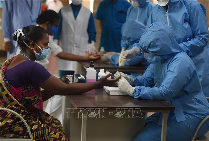 Nhân viên y tế lấy mẫu xét nghiệm dịch COVID-19 cho người dân ở Chennai, Ấn Độ, ngày 18/4/2020. Ảnh: THX/TTXVN