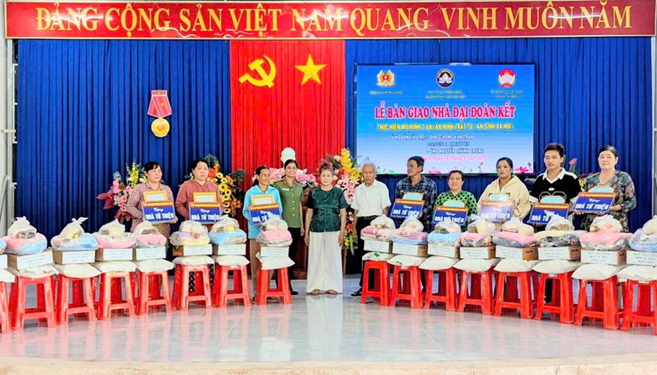 Vừa qua, tại phường Núi Voi, thị xã Tịnh Biên, tỉnh An Giang, Công an tỉnh An Giang phối hợp Ban Trị sự Trung ương Giáo hội Phật giáo Hòa Hảo và UBMTTQVN thị xã Tịnh Biên long trọng tổ chức Lễ bàn giao nhà Đại đoàn kết cho hộ nghèo, gia đình khó khăn về nhà ở tại thị xã.