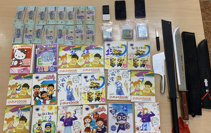 Từ lời khai của An và những người liên quan, ngay trong đêm lực lượng Công an tiến hành khám xét khẩn cấp nơi ở của Võ Thanh Tùng, thì tiếp tục phát hiện thu giữ 17 quyển tập học sinh có ghi tên những người cho vay tiền, 200 triệu đồng tiền mặt và 2 cây mã tấu.