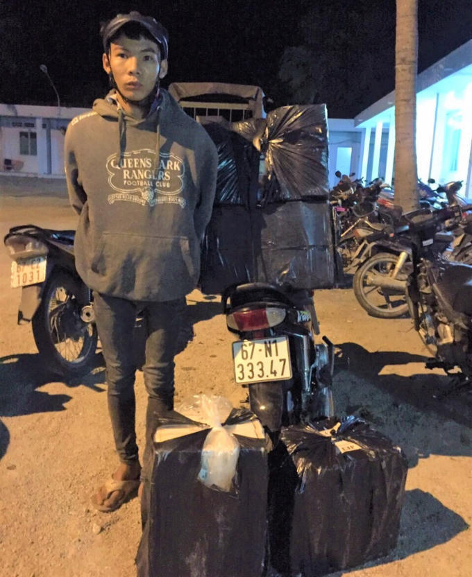 Thông tin ban đầu, vào khoảng 21h ngày 12/01, Tổ công tác liên ngành chống buôn lậu tại Tịnh Biên tiến hành tuần tra, kiểm soát tại khu vực trên thì phát hiện Hồ Văn Khỏe, sinh năm 2000, cư trú khóm 2, phường Châu Phú A, thành phố Châu Đốc điều khiển xe mô tô biển kiểm soát 67N1-333.47 chở theo nhiều bọc đen cồng kềnh có dấu hiệu nghi vấn nên tiến hành dừng phương tiện để kiểm tra.
