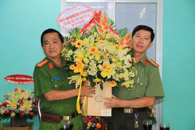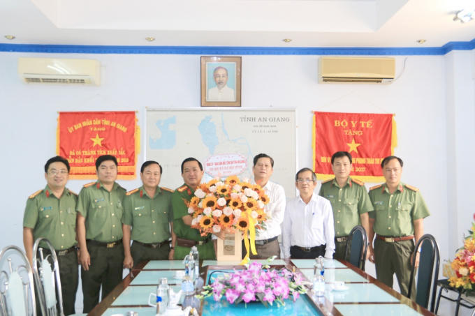 Phó Giám đốc Công an tỉnh thăm, chúc mừng Sở Y tế tỉnh An Giang.
