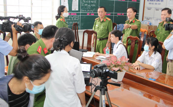 Đội Cảnh sát Quản lý hành chính về trật tự xã hội Công an thành phố Long Xuyên tổ chức cấp căn cước công dân tại Trường Trung học cơ sở Bình Khánh.