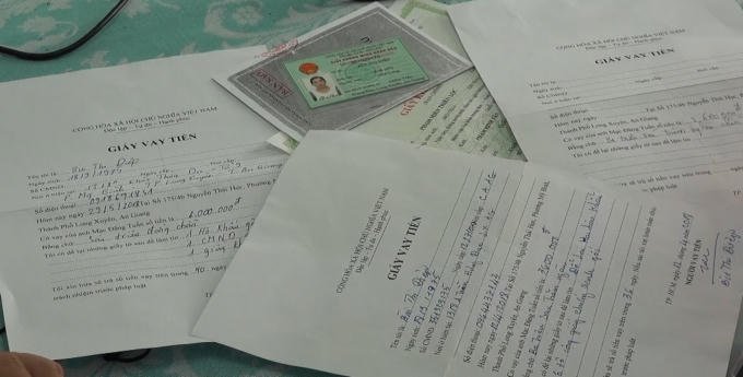 Bà N cho biết: “Trước đây bà vay của các đối tượng 5 triệu đồng, trả dần dưới hình thức tiền góp, mỗi ngày góp 150 ngàn, trong thời gian 40 ngày. Trên giấy nợ ghi tui vay 5 triệu đồng, nhưng thực tế khi nhận tiền tui chỉ nhận được 4,2 triệu đồng. Người cho vay nói do điều kiện phải góp trước 2 ngày và tiền chi phí giấy mực 500 ngàn, tổng cộng là 800 ngàn. Do vậy, bà nhận không đủ số tiền ghi trên giấy nợ, nhưng phải góp đủ trong thời gian 40 ngày với số tiền là 6 triệu đồng”.